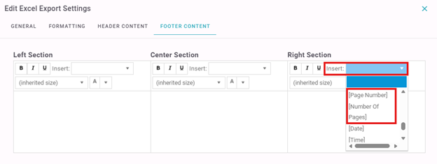 As for the header (company logo) and footer, this can be done under the Excel Export